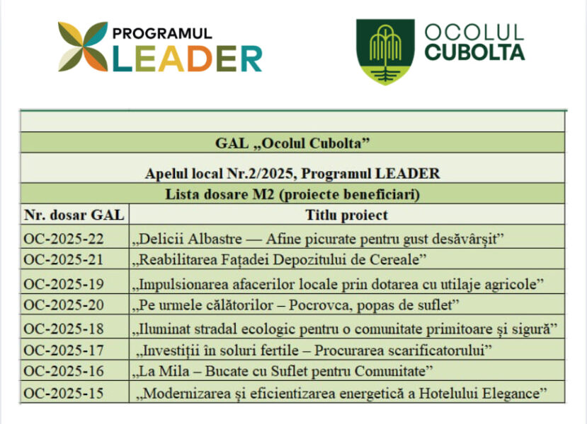 🤝 Le mulțumim tuturor celor care au aplicat pentru implicare, curajul și dorința de a sprijini dezvoltarea microregiunii GAL Ocolul Cubolta.